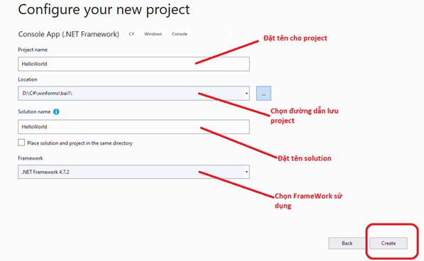 1: Khởi động Visual Studio => chọn vào mục Create
